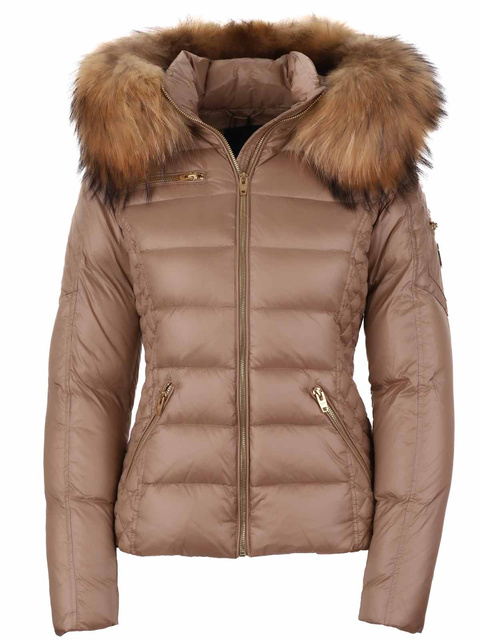 ROCKANDBLUE LEIA 63 cm – kurtka puchowa swobodnym kroju w kolorze czekolady z prawdziwym futrem jenota