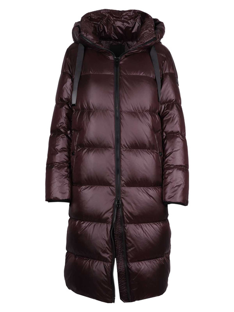 ROCKANDBLUE BEAM MUD 90 cm - Damski puchowy płaszcz z kapturem o bardzo wąskim kroju
