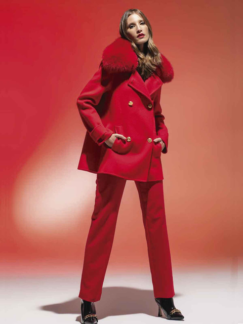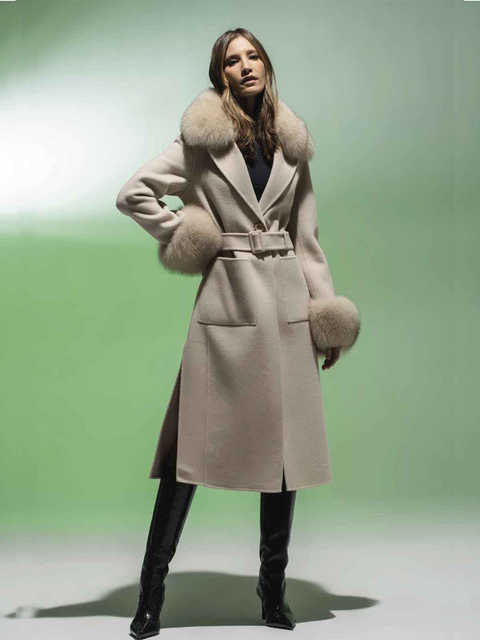 ( ilość produktów: 16 )LOCO LUXO Luksusowy damski płaszcz wełniany z kołnierzem z lisa