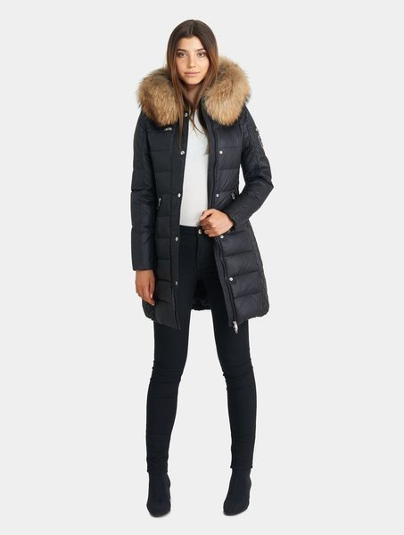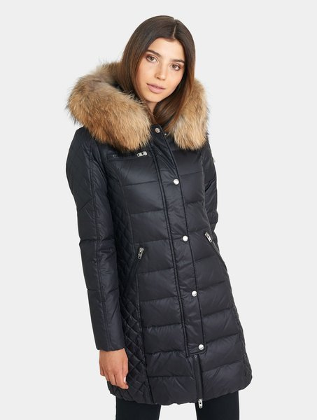 - Ciepły i modny płaszcz puchowy BEAM od ROCKANDBLUE z kapturem i kołnierzem z futra jenota.