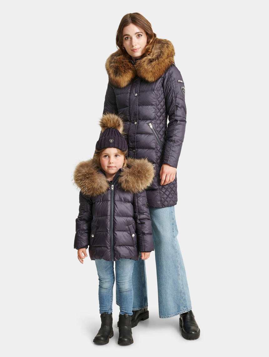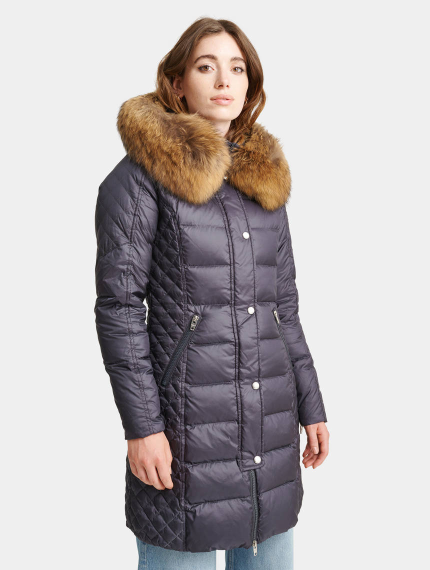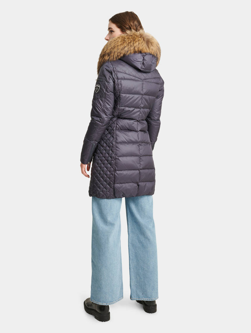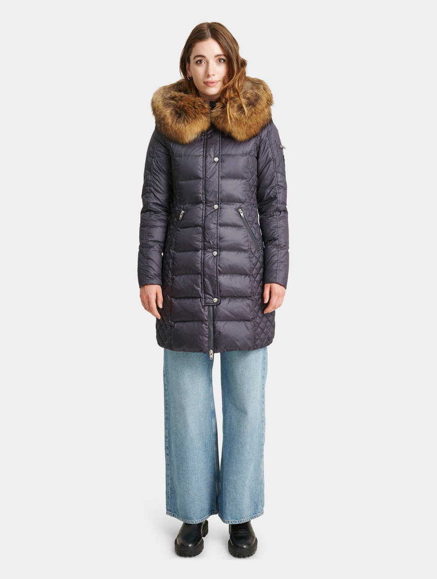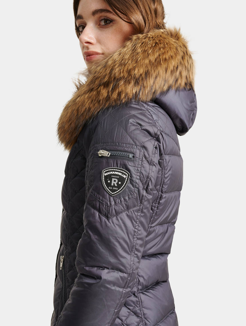 - Ciepły i modny płaszcz puchowy BEAM od ROCKANDBLUE z kapturem i kołnierzem z futra jenota.