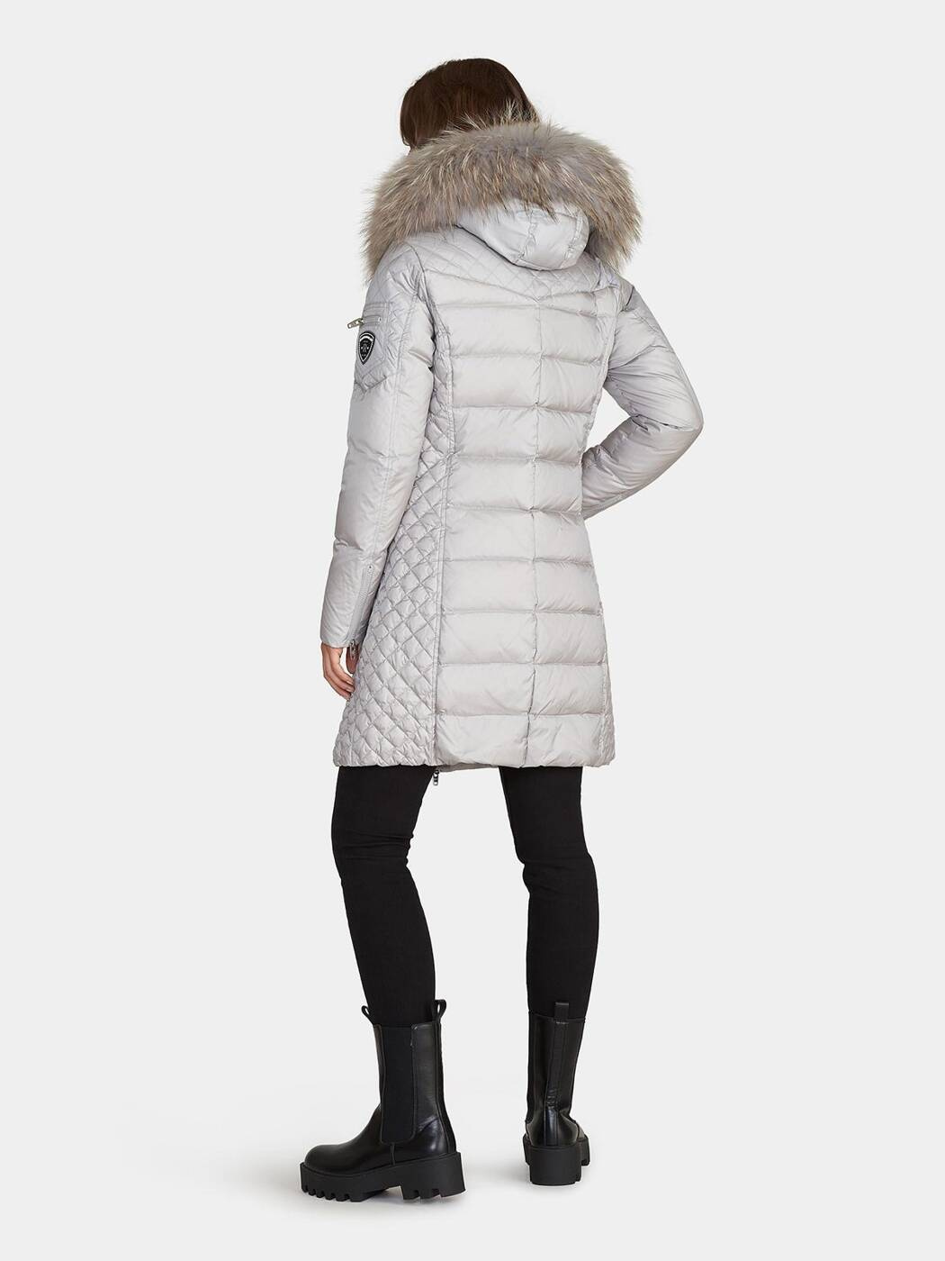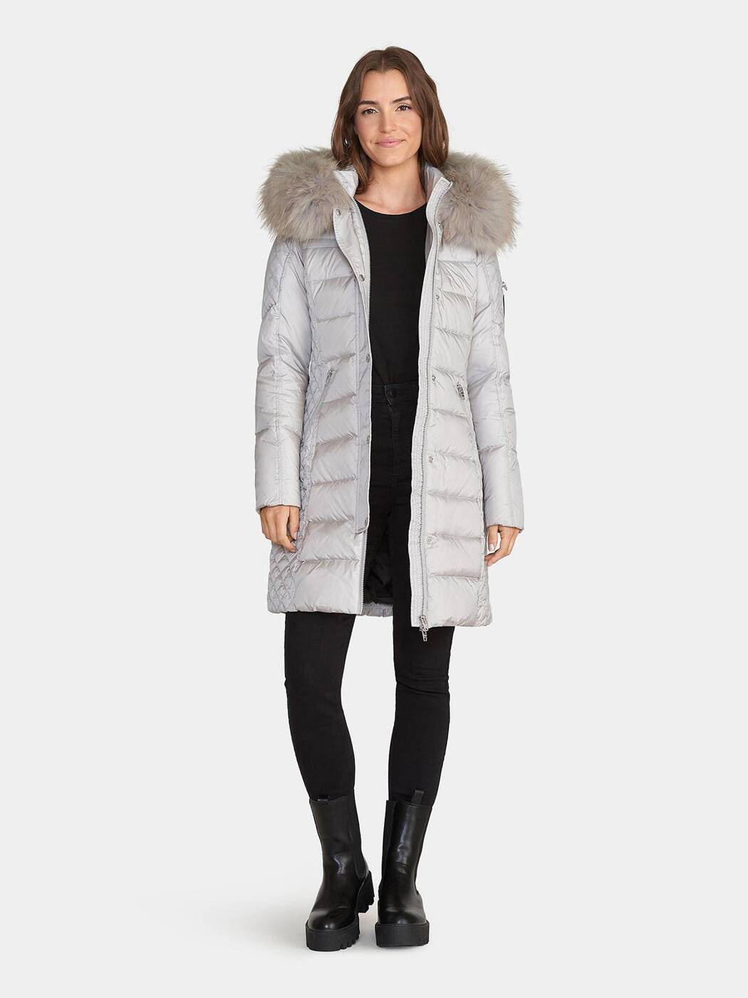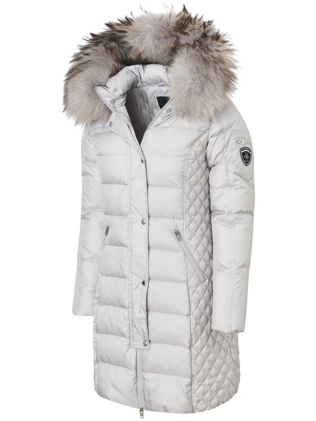 Opinie o ROCKANDBLUE BEAM SILVER 90 cm - Damski puchowy płaszcz z kapturem o bardzo wąskim kroju