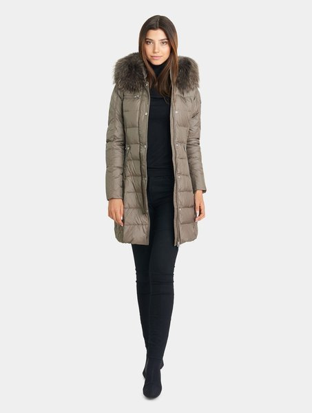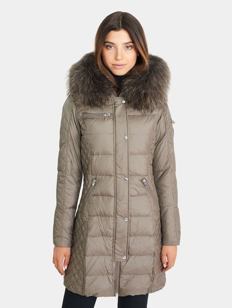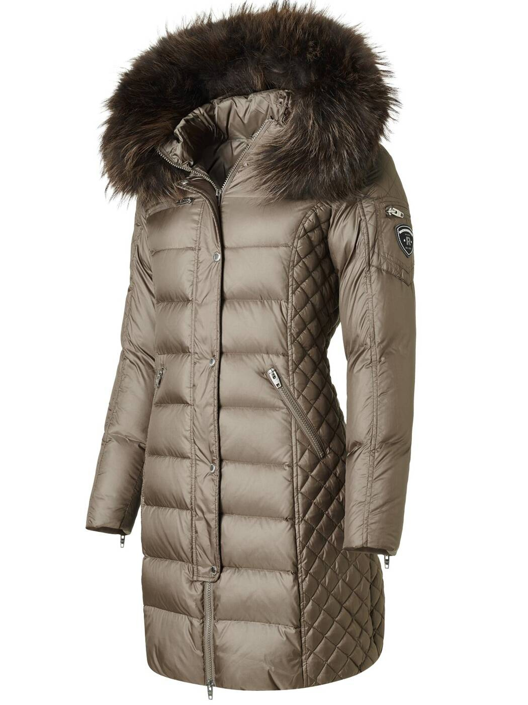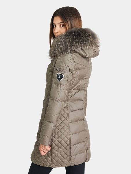 - Ciepły i modny płaszcz puchowy BEAM od ROCKANDBLUE z kapturem i kołnierzem z futra jenota.