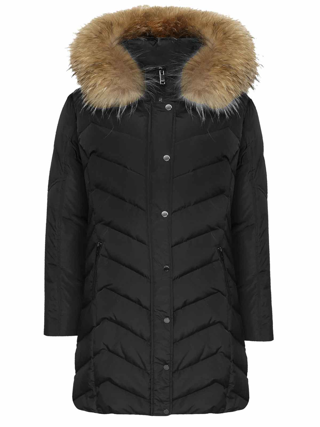 - SAKI JEMMA COMFORT to damska kurtka o powiększonym kroju, wykonana z wysokiej jakości materiału, z naturalnym kołnierzem z jenota.