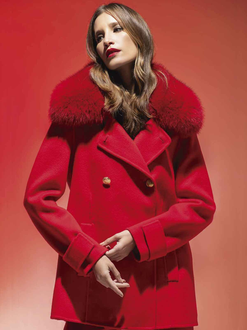 - Elegancki płaszcz LOCO LUXO w intensywnie czerwonym kolorze to połączenie klasy i luksusu. Wykonany z najwyższej jakości wełny, zachwyca miękkim, naturalnym kołnierzem z futra lisa, który nadaje mu wyjątkowego charakteru.