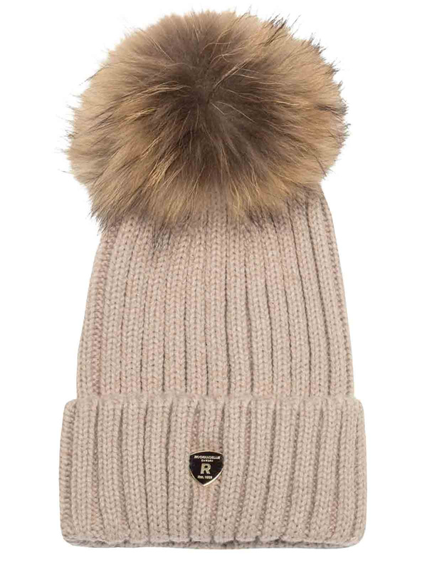 - Ciasno dziana czapka z mieszanki wełny z naszywką z logo z przodu i futrzaną pomponem na czubku. Idealna czapka, która pozwala zachować stylowy wygląd i jednocześnie zapewnia ciepło w chłodne dni.