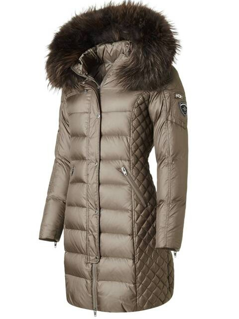 ROCKANDBLUE BEAM MUD 90 cm - Damski puchowy płaszcz z kapturem o bardzo wąskim kroju