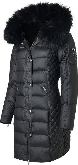 ( ilość produktów: 16 )ROCKANDBLUE BEAM BLACK 90 cm - Damski puchowy płaszcz z kapturem o bardzo wąskim kroju